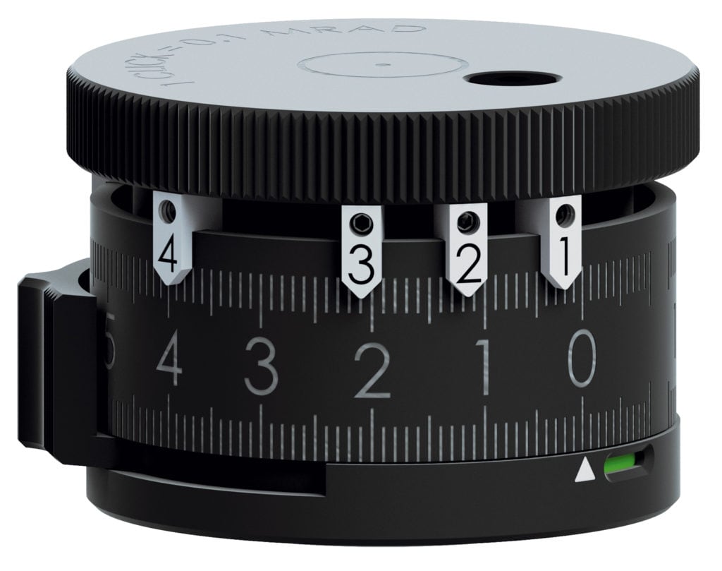 The ST II-B is the extended version of the Single Turn II (ST II) turret. With the help of six, clearly visible position indicators (1–6), the operator can easily set-up their own calibrated turret according to the ballistic of the rifle. The position indicator can be placed at any position on the turret according to the ballistic coefficient.