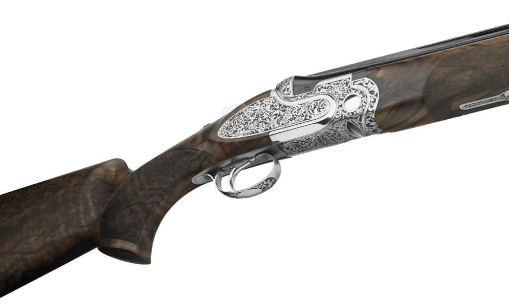 The stock and forend are cut from superior quality walnut, providing perfect counterpoint to the flawless scroll engraving. It’s a hefty gun, weighing eight-and-a-half pounds, so deals with recoil well, and feels superbly put together.
